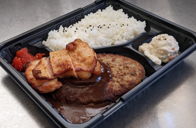 ふんわりハンバーグにオーブンで焼き上げた肉汁溢れるチキンステーキのせ。濃厚な味付けで食べ応えあり。おすすめです☆+100yenでバルサミコソースへ変更可+200yenでカレーソースへ変更可
